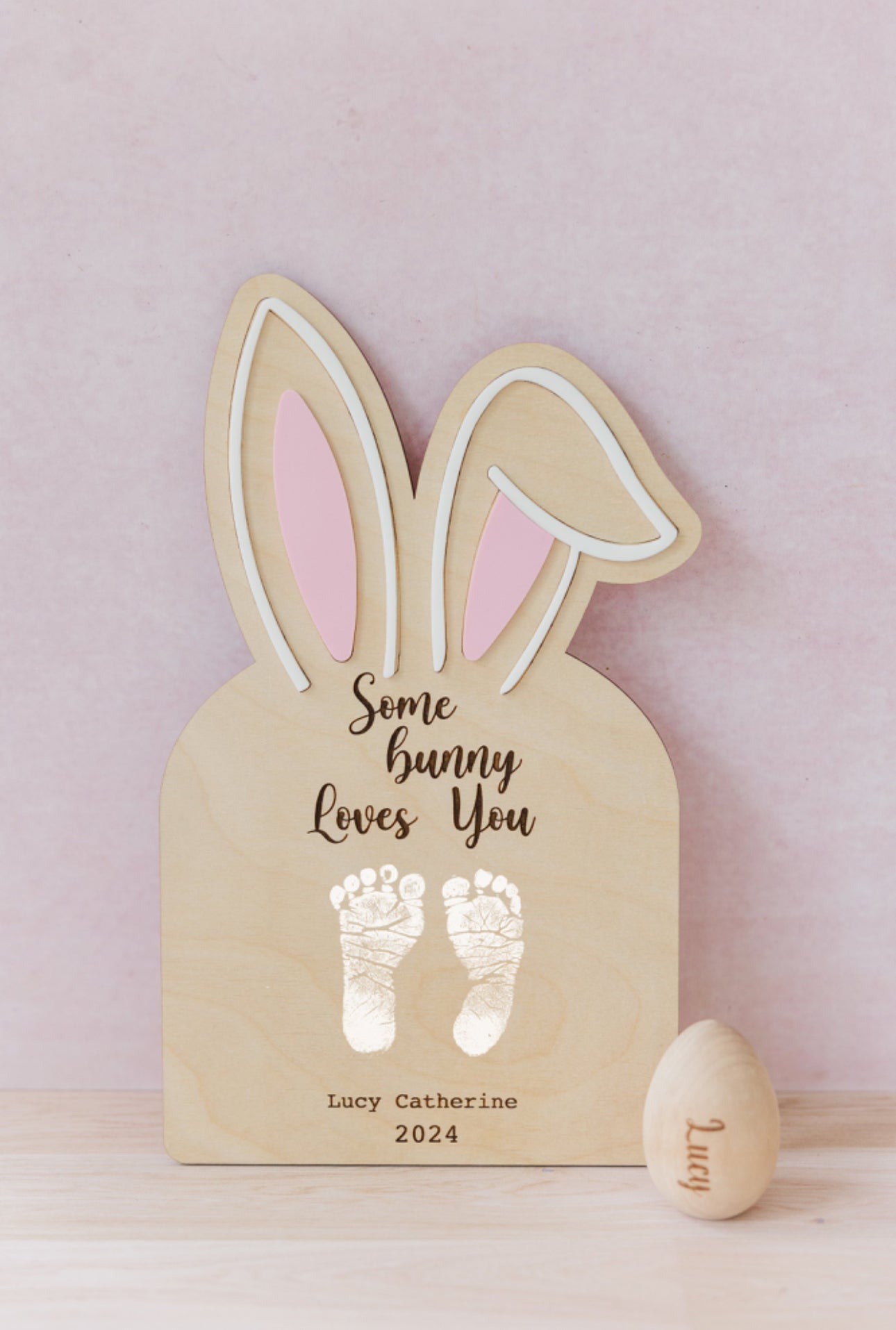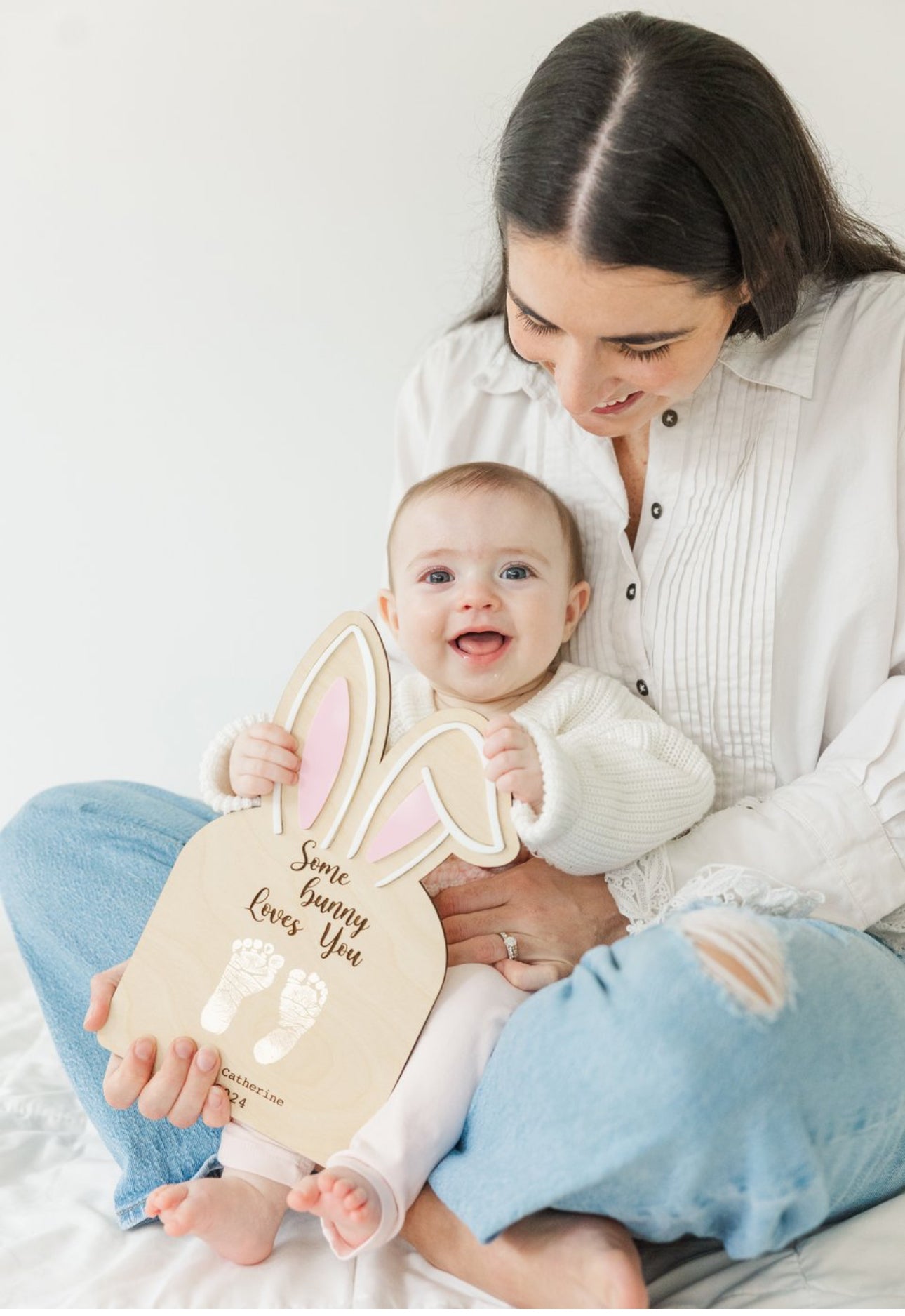 Adding your little footprints to this blank wood sign makes the sweetest Easter keepsake & doubles as cute decor