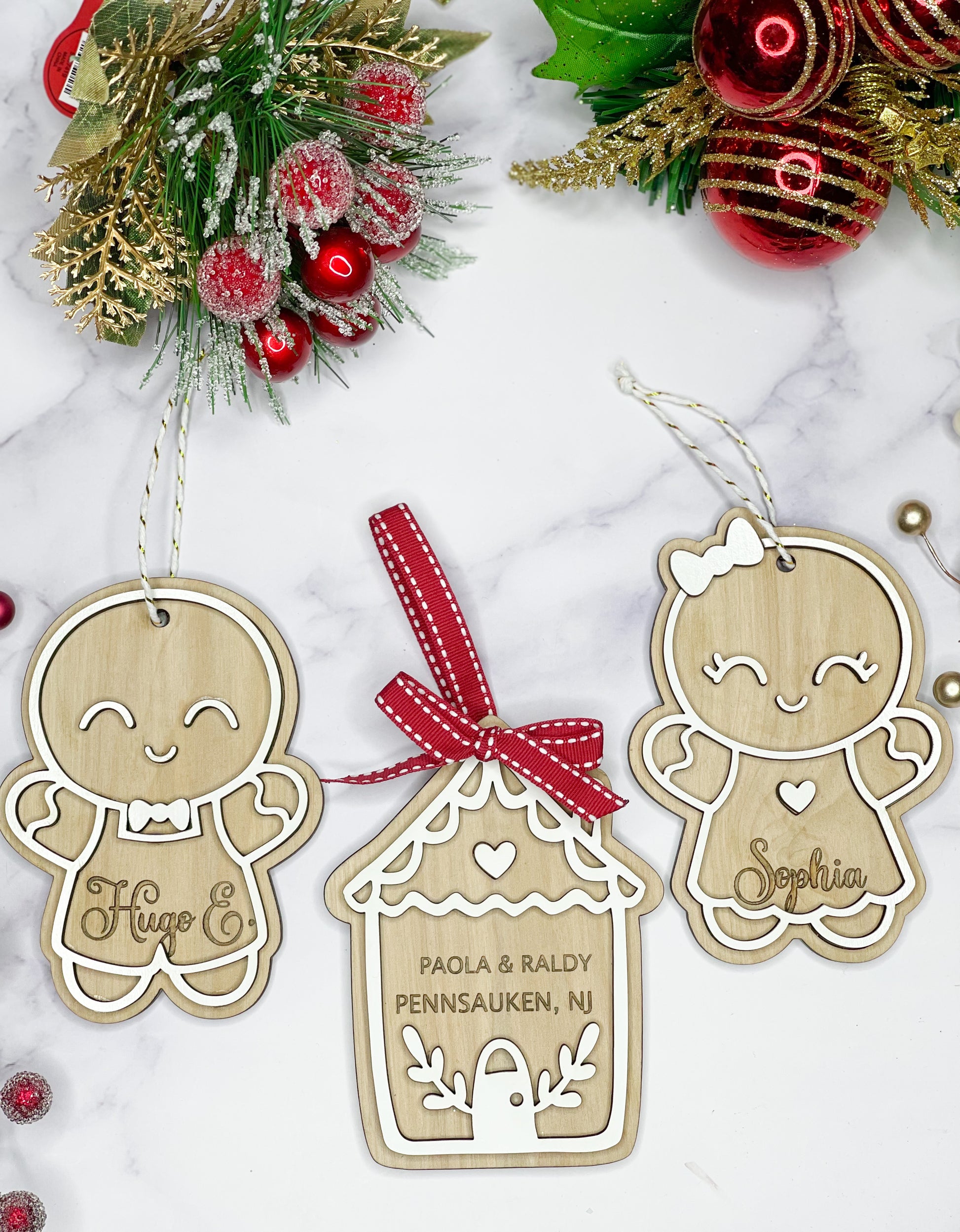 Gingerbread Boy, Gingerbread Girl & house ornaments