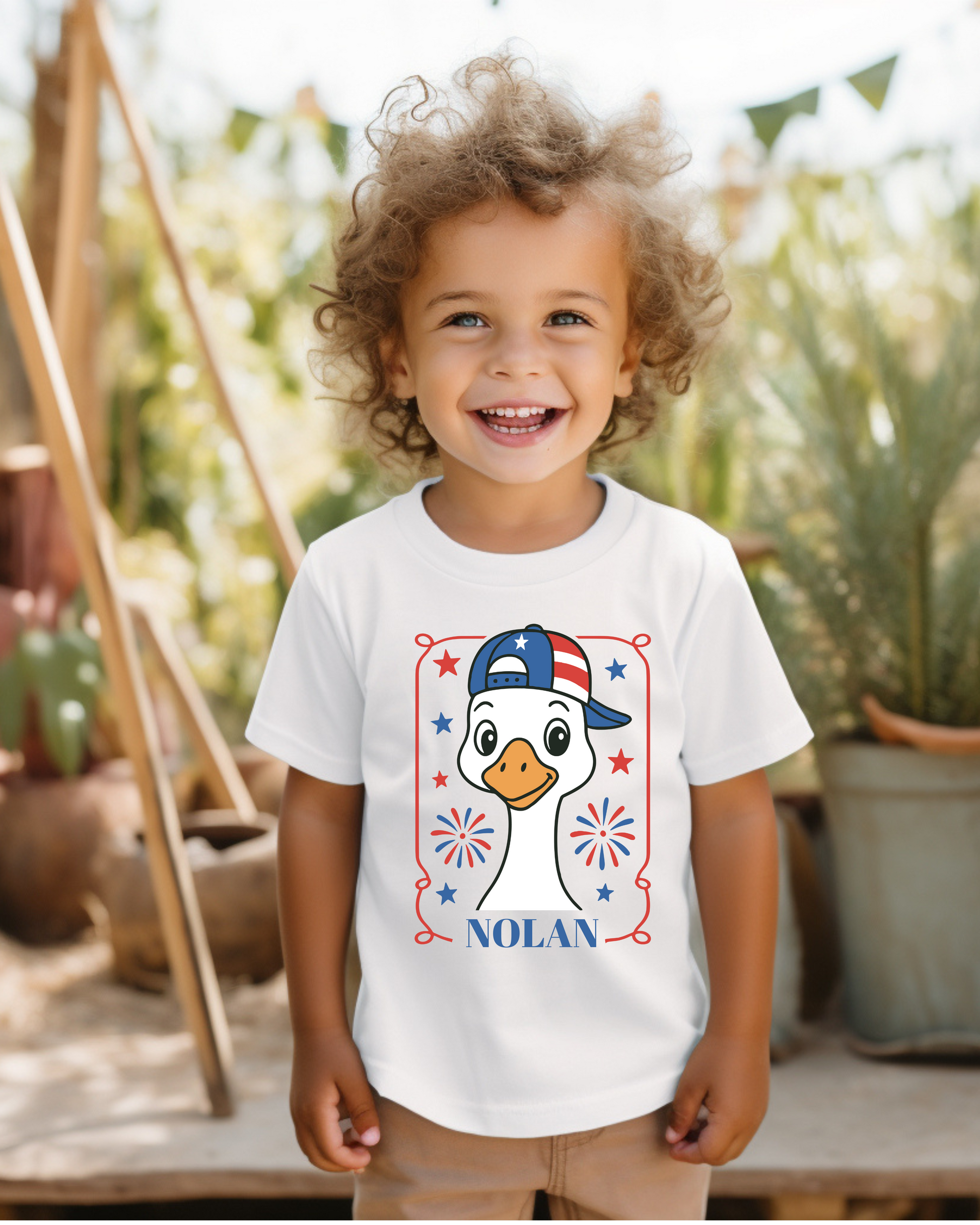 Personalized 4th of July Goose T-Shirt for Toddlers – Custom Name Tee