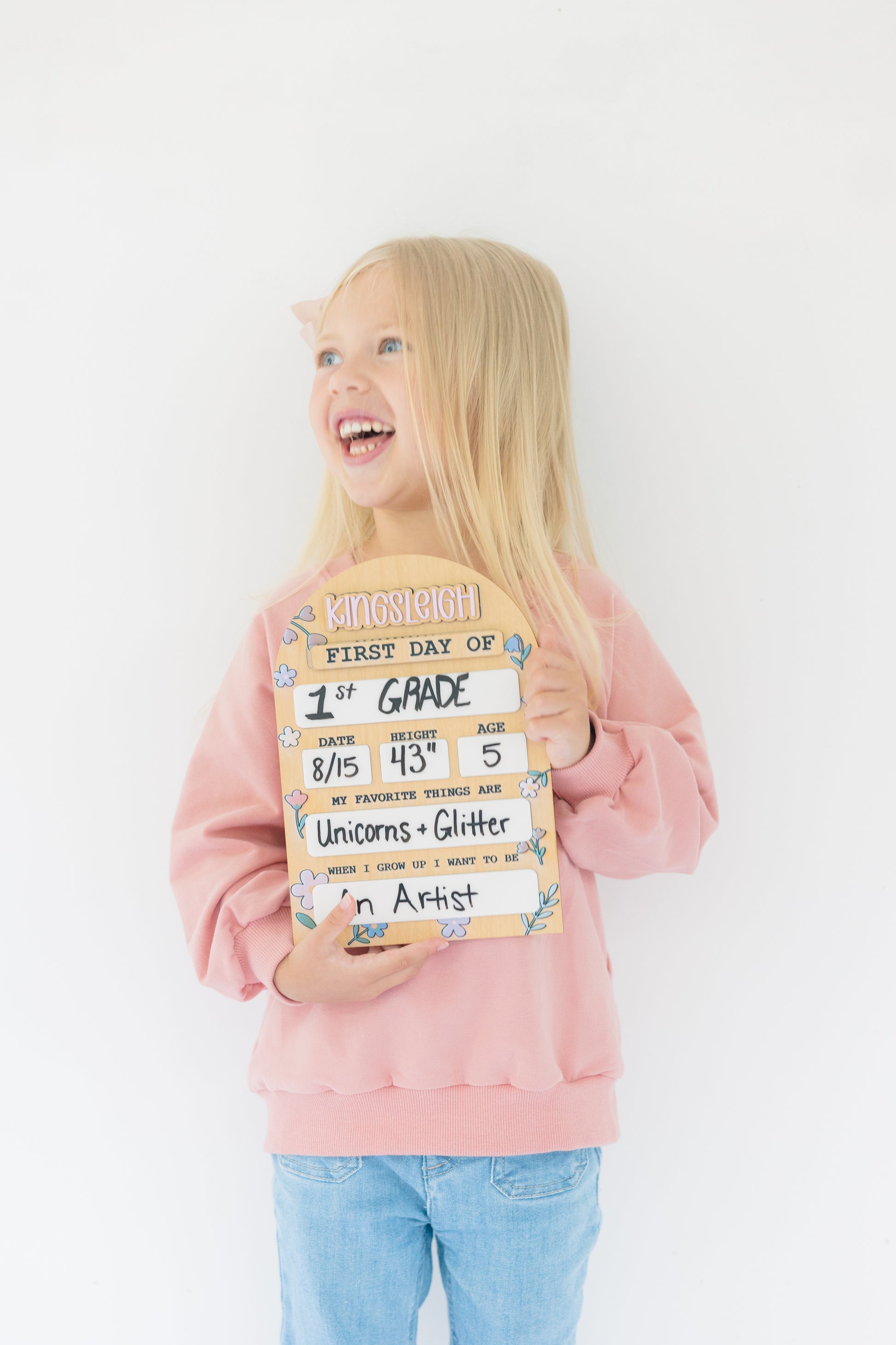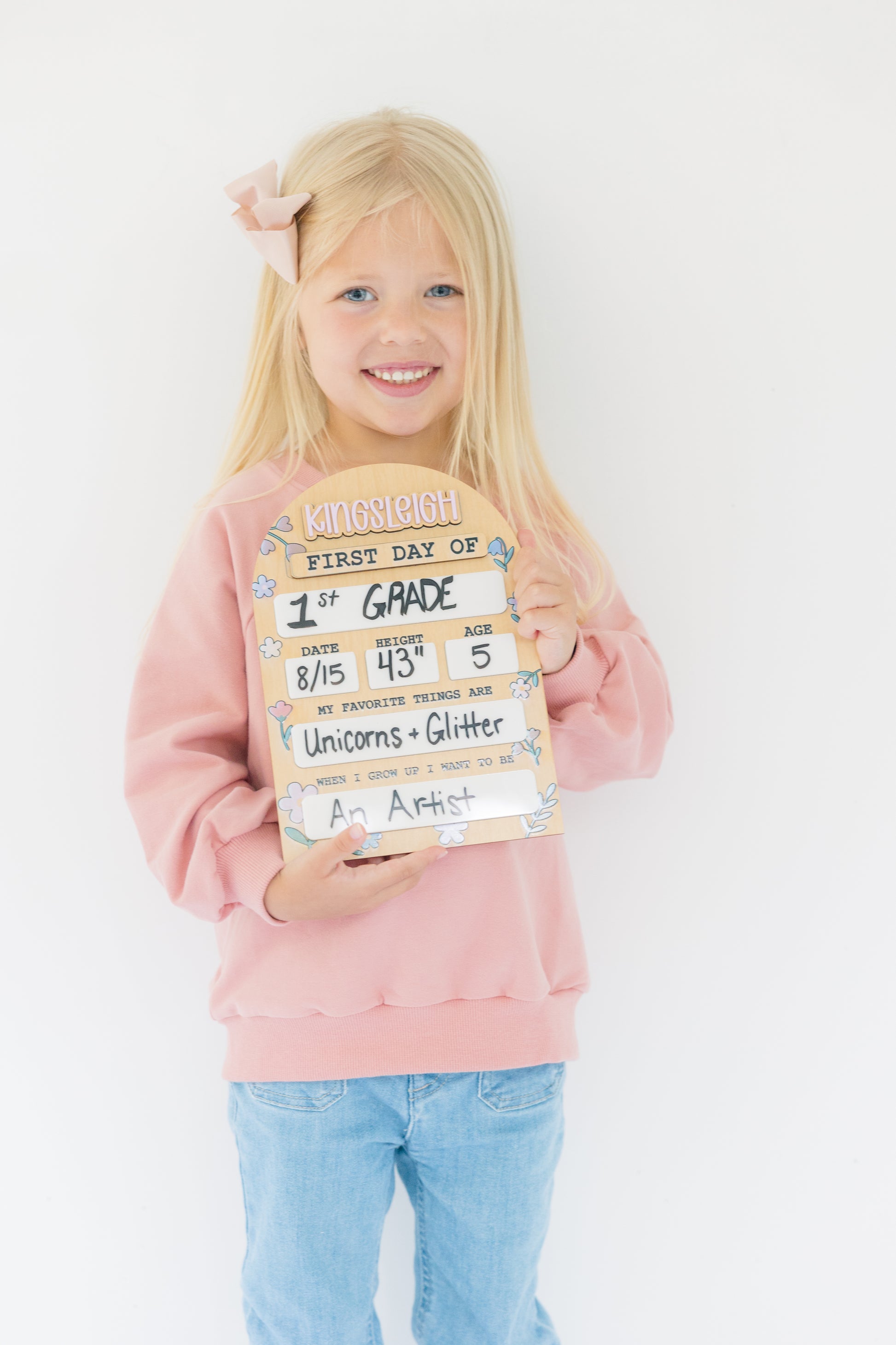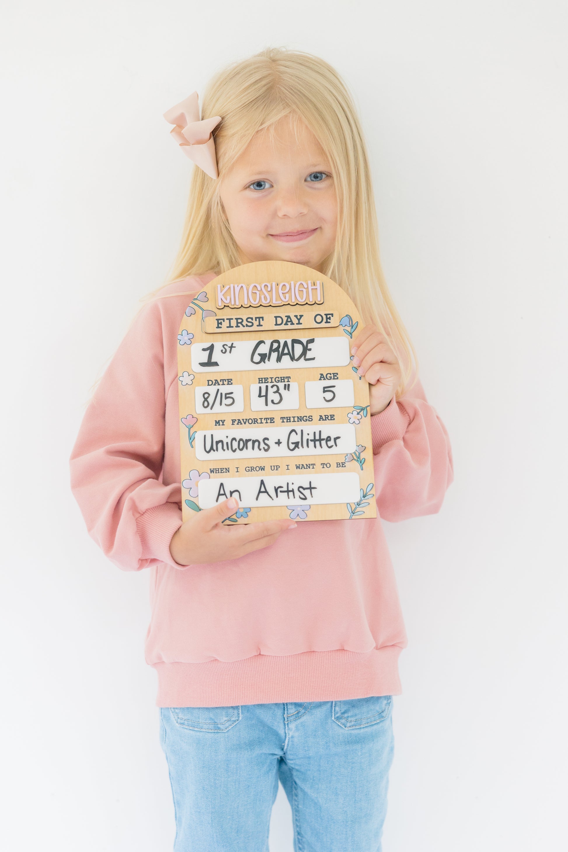 Floral Arch First & Last Day of School Sign – Personalized Reusable Back to School Board for Girls | Custom Name Photo Prop