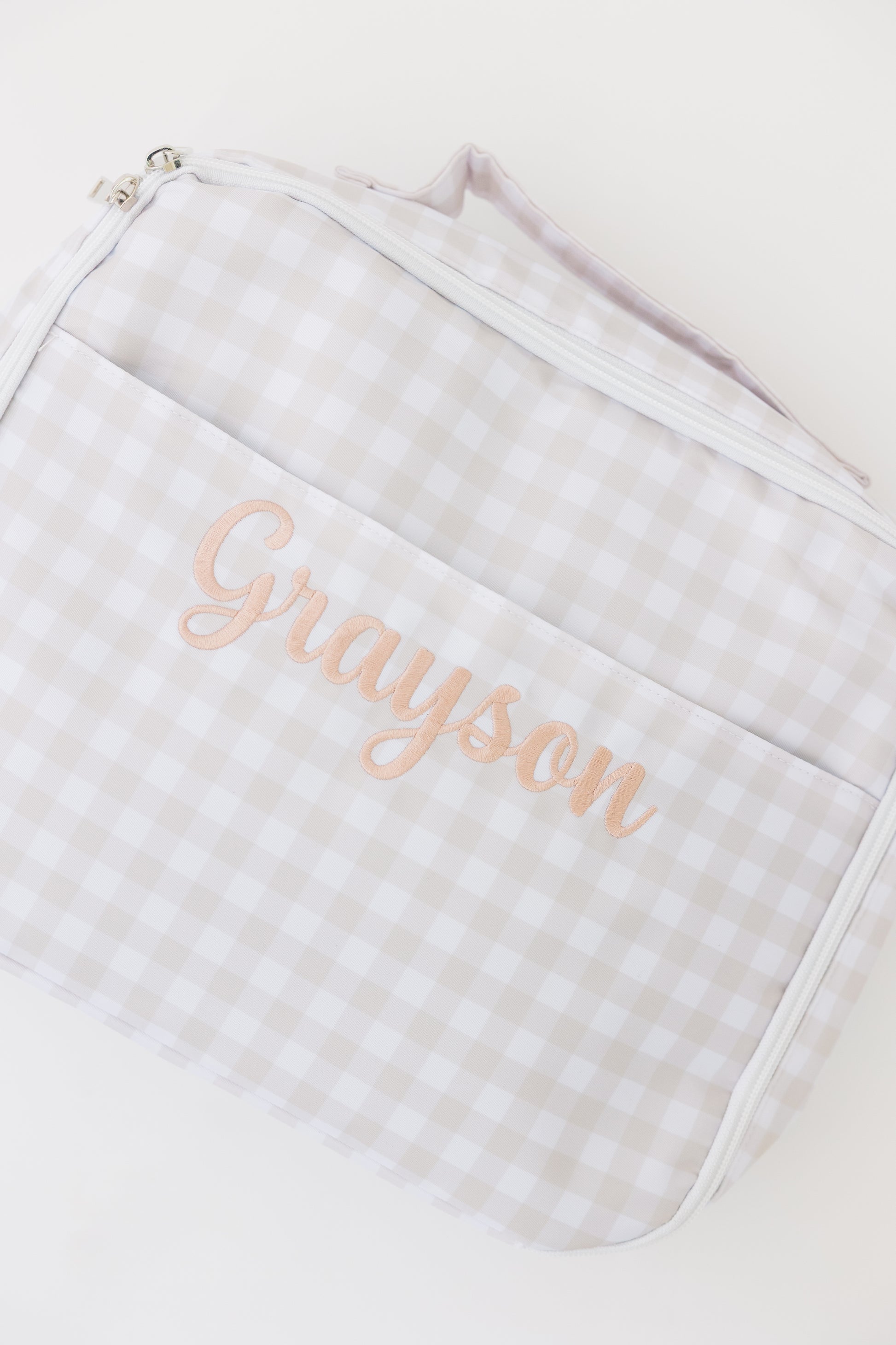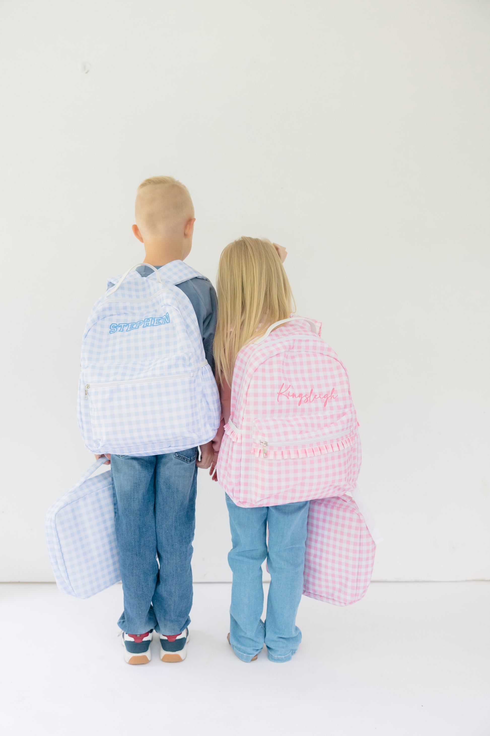 Our personalized gingham backpacks are designed with little ones in mind β lightweight, waterproof, and embroidered with your childβs name for a one-of-a-kind touch.