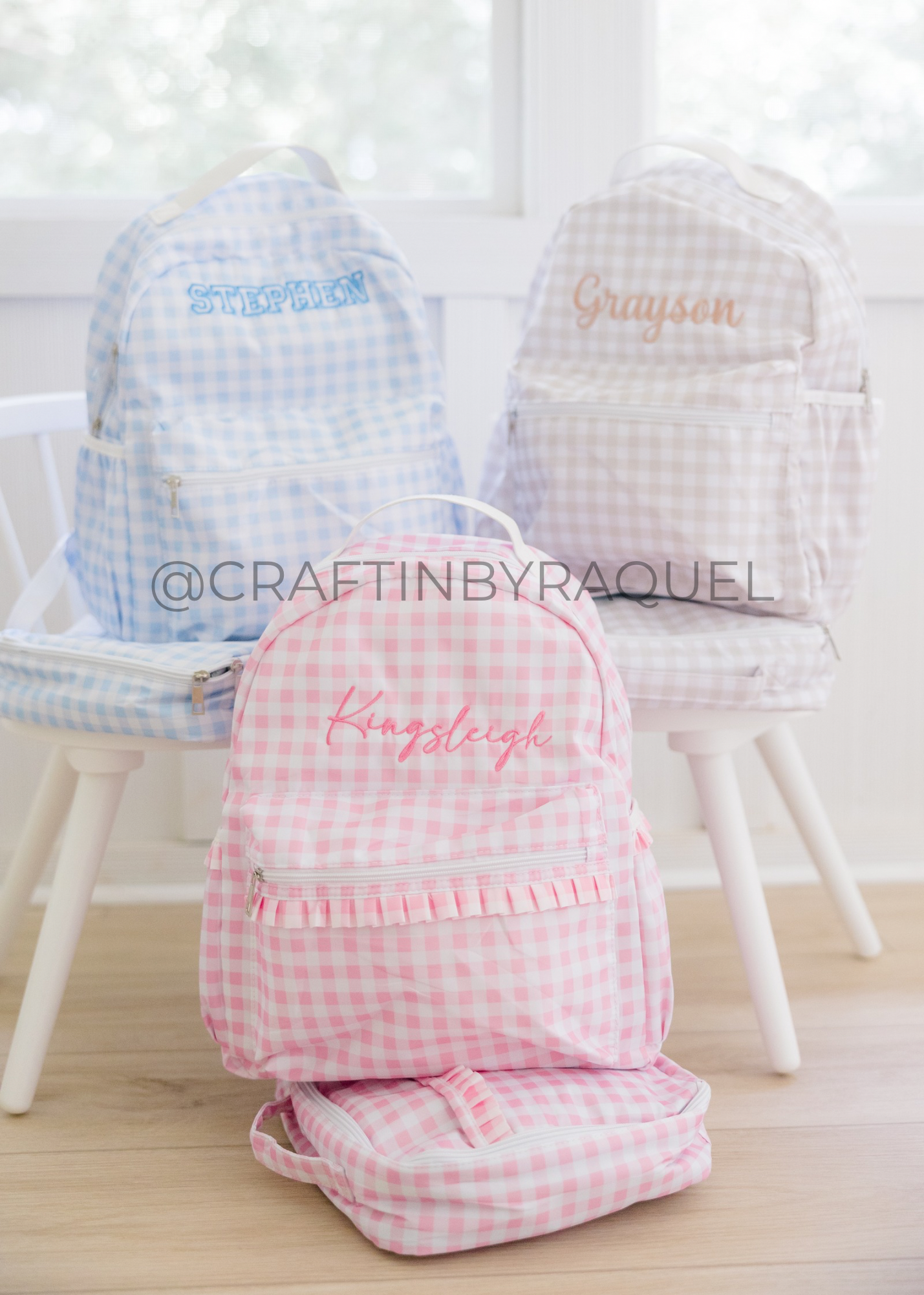 Personalized Gingham Backpack β Custom Embroidered Name β Waterproof Kids Bookbag β Back to School β Toddler or Preschool Backpack