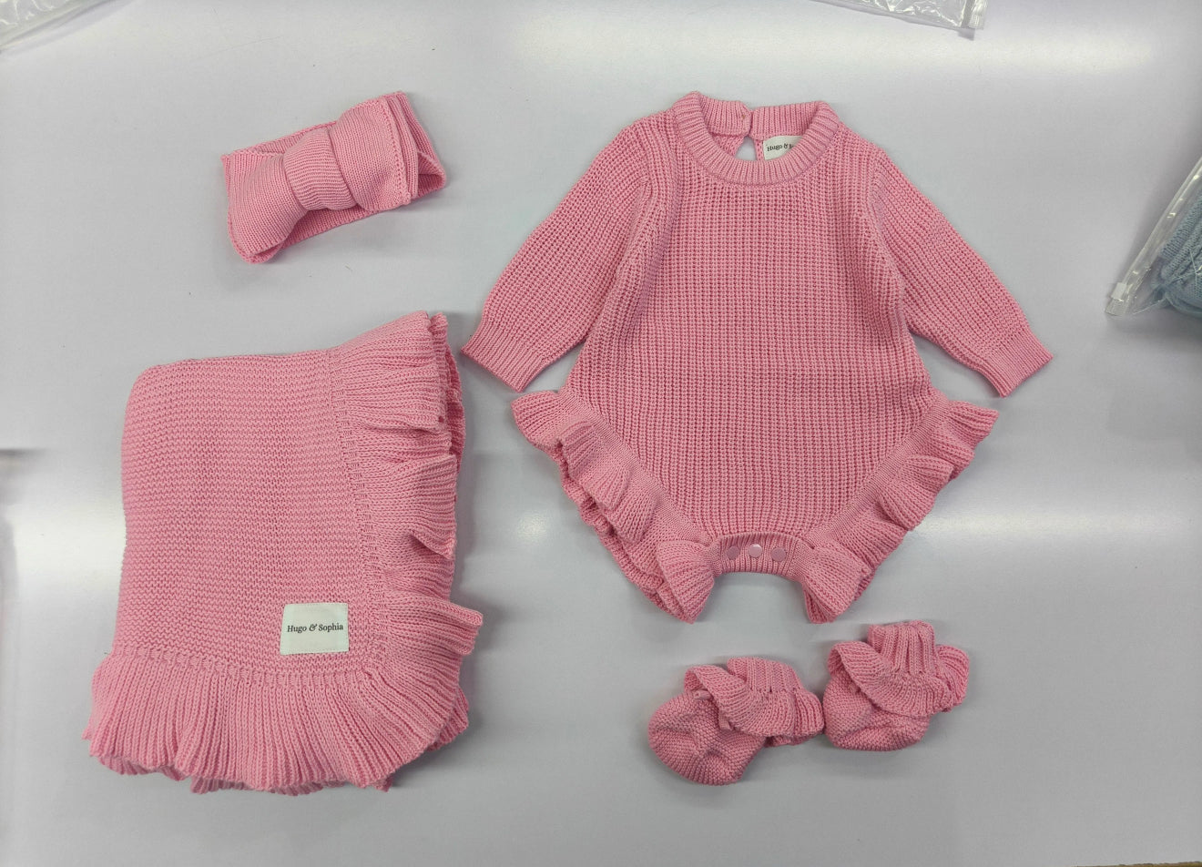 Wrap your little one in comfort and timeless style with our luxury knit baby sets, now with custom embroidery on the bodysuit and blanket! Perfect for baby showers, first photos, or just everyday cuteness.
