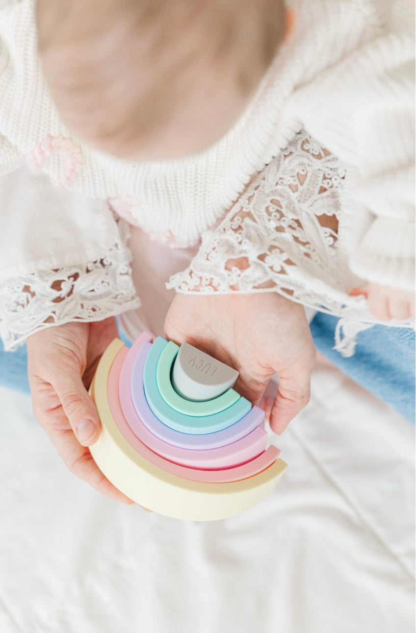 Silicone Rainbow Stacker – where safety, education, and creativity converge in a vibrant spectrum of play. Crafted from 100% food-grade silicone, this stacking toy is not just a visual delight but a testament to our commitment to your child's well-being. BPA-free, soft, and non-toxic, it's a haven of safety for your little ones, ensuring worry-free play.