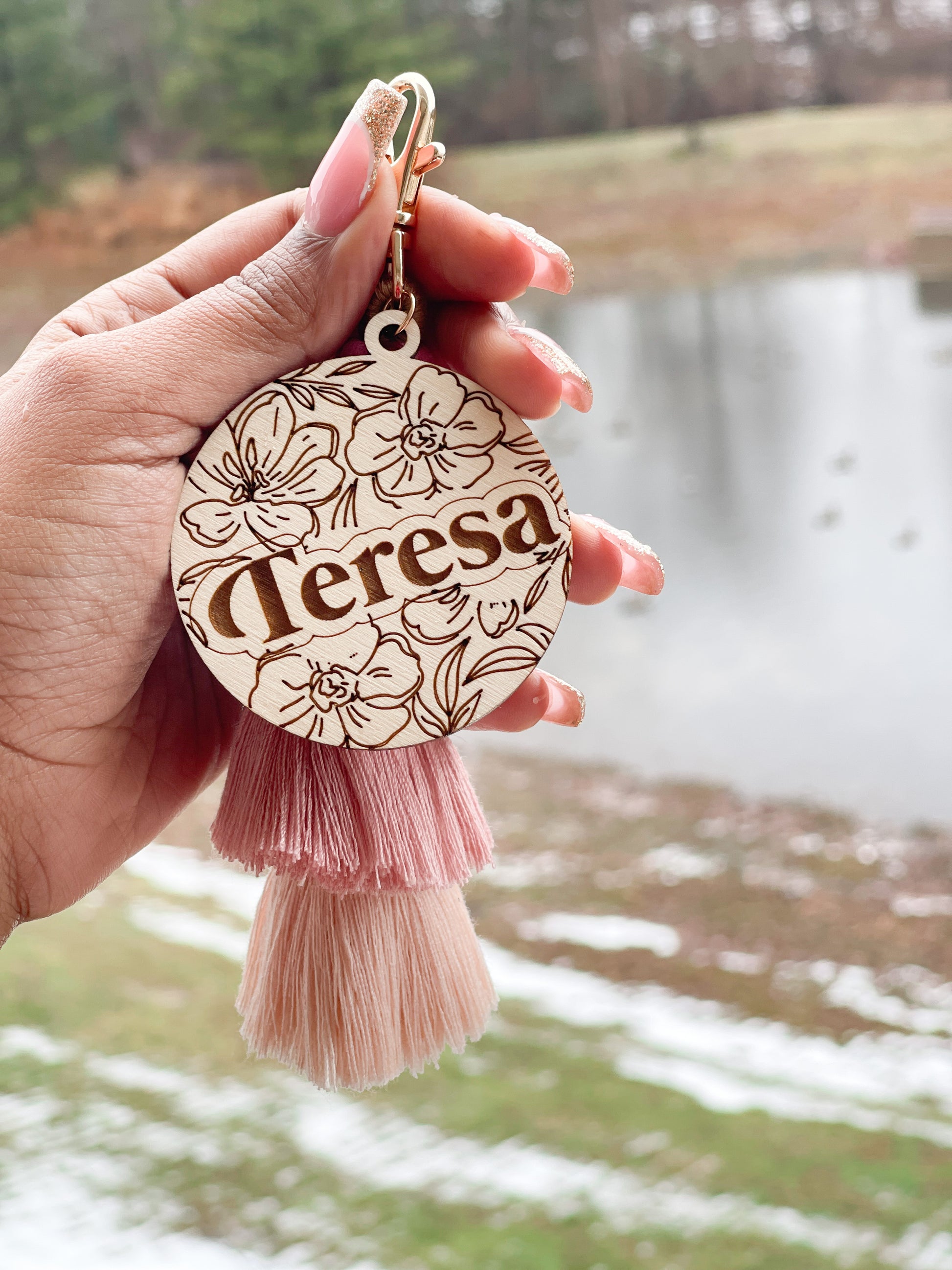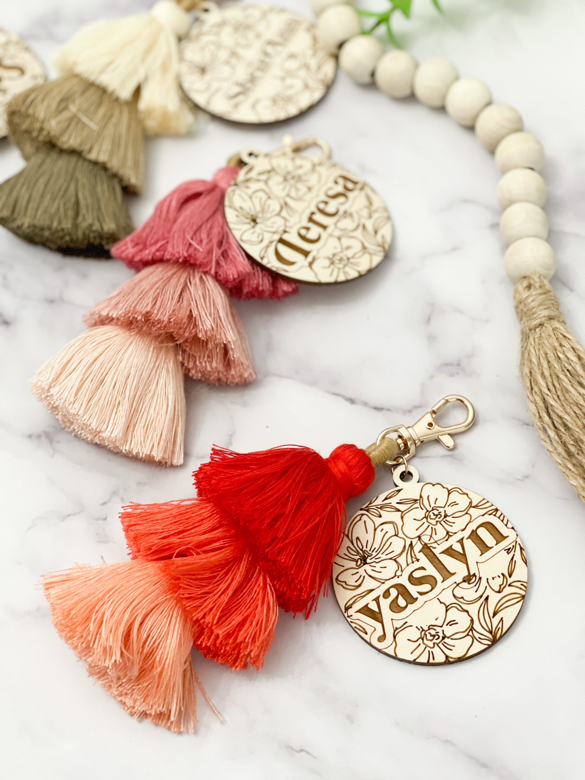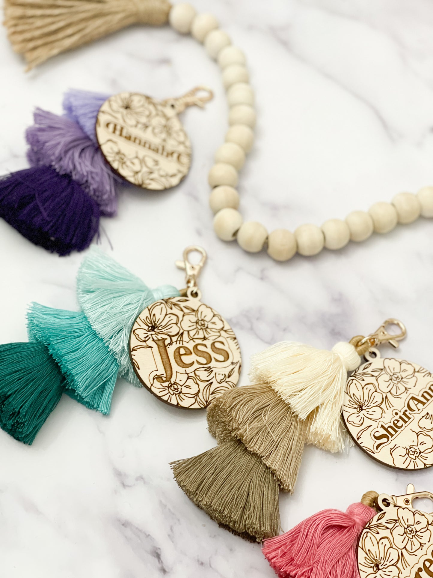 This keychain with tassels is cute and fun, and can also be used as an adorable diaper bag keychain. Wear it on your backpack or keys for your daily adventures.