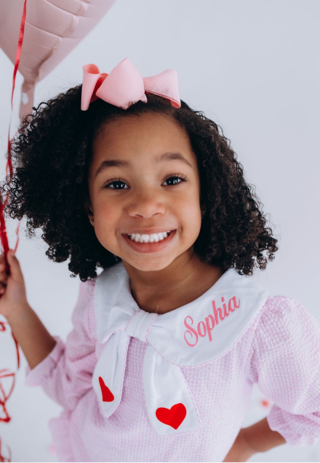Valentine Seersucker Outfit for Girls – Heart Collar Dress, Romper & Pant Set | Baby, Toddler + Kids | Sibling Matching